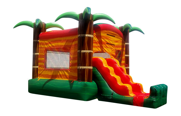 Our 22ft Tropical Paradise is a classic unit. With a jumping area and an attached slide this combo is perfect for any of your upcoming events.
