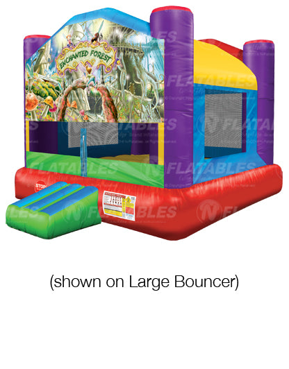 Kids love our timeless themes! This construction themed removable panel features original artwork, UV coated hi-res digital print, and commercial-grade velcro to easily attach to the bounce house or combo.