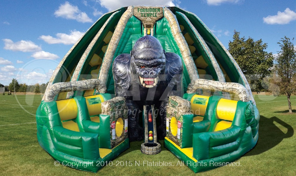 2 players compete in this jungle-themed adventure. Opponents must navigate through a series of squeeze plays, a steep climbing wall, and a curved slide down. The first opponent to deposit a ball down the chute wins!