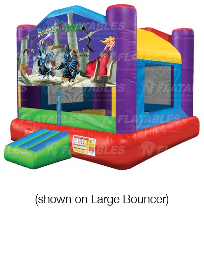 Kids love our timeless themes! This castle themed removable panel features original artwork, UV coated hi-res digital print, and commercial-grade velcro to easily attach to the bounce house or combo.