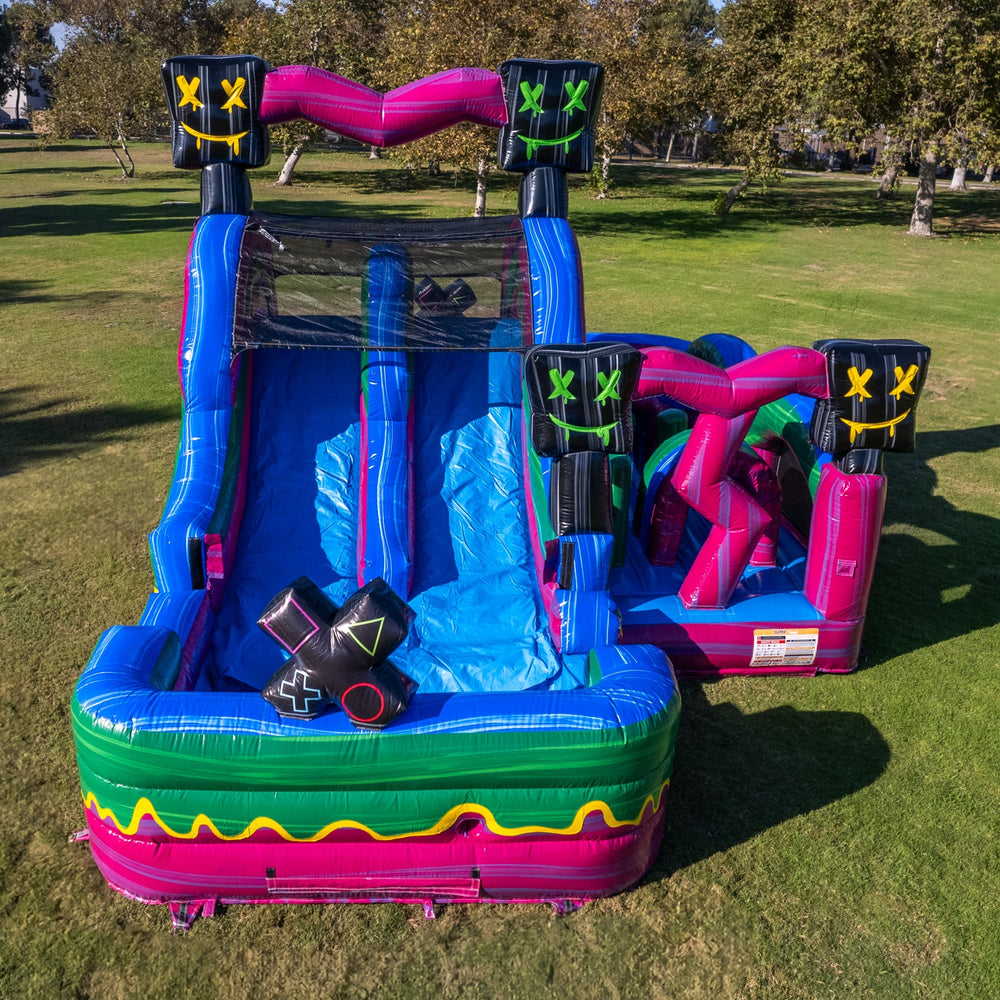 Gear up for the Level up U-turn wet dry obstacle! Riders must jump, run, crawl, climb, and slide through the course to the end! The obstacle course also offers ample bounce space! The internal water bladder system means this can be a wet or dry unit. This unit is perfect for larger-scale events and parties!