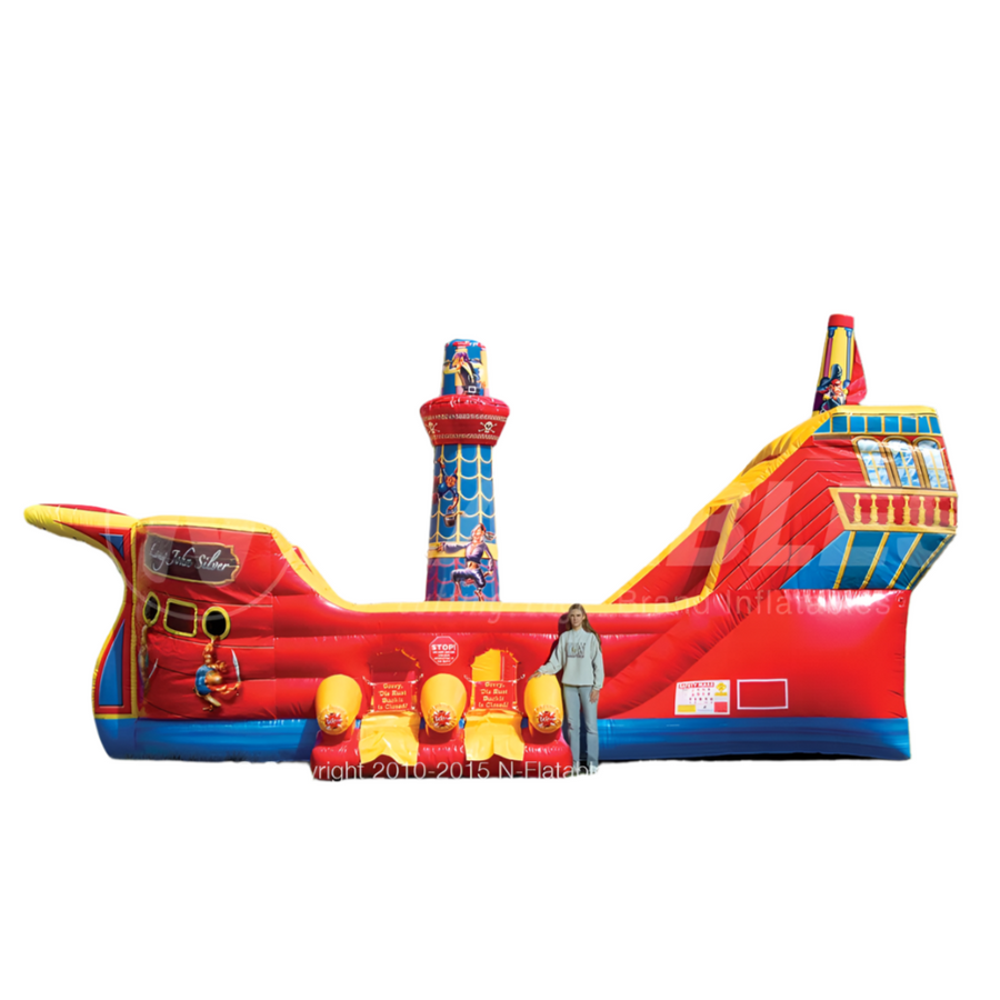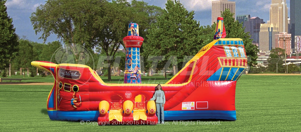 This dazzling, digitally printed unit features the look of a Spanish Galleon on the high seas. Designed as a combination climb, slide, and bouncer, the Long John Silver™ is a true favorite for children of all ages.
