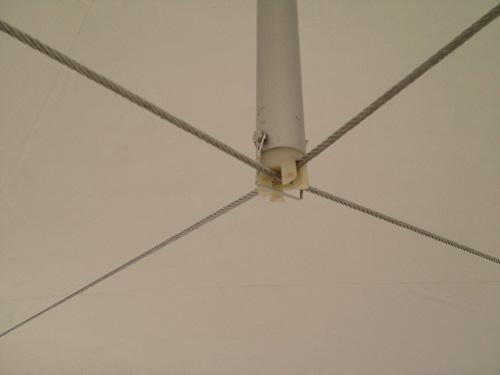 This 20'x20' high peak frame tent is set up using tension cross cables to support the center pole, no center pole on floor. This design provides a high peak elegant look and clear open floor. It also has fewer fittings and parts than traditional frame tents and pole tents, making it easier to setup and take down. A 20'x20' Marquee tent can be set up in 15 minutes with only 2 people.