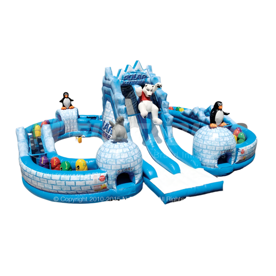 This cool unit is perfect for a hot summer day! 2 players face off through a series of tunnel crawls, tackle dummies, and climbing walls. The player to slide down first wins.