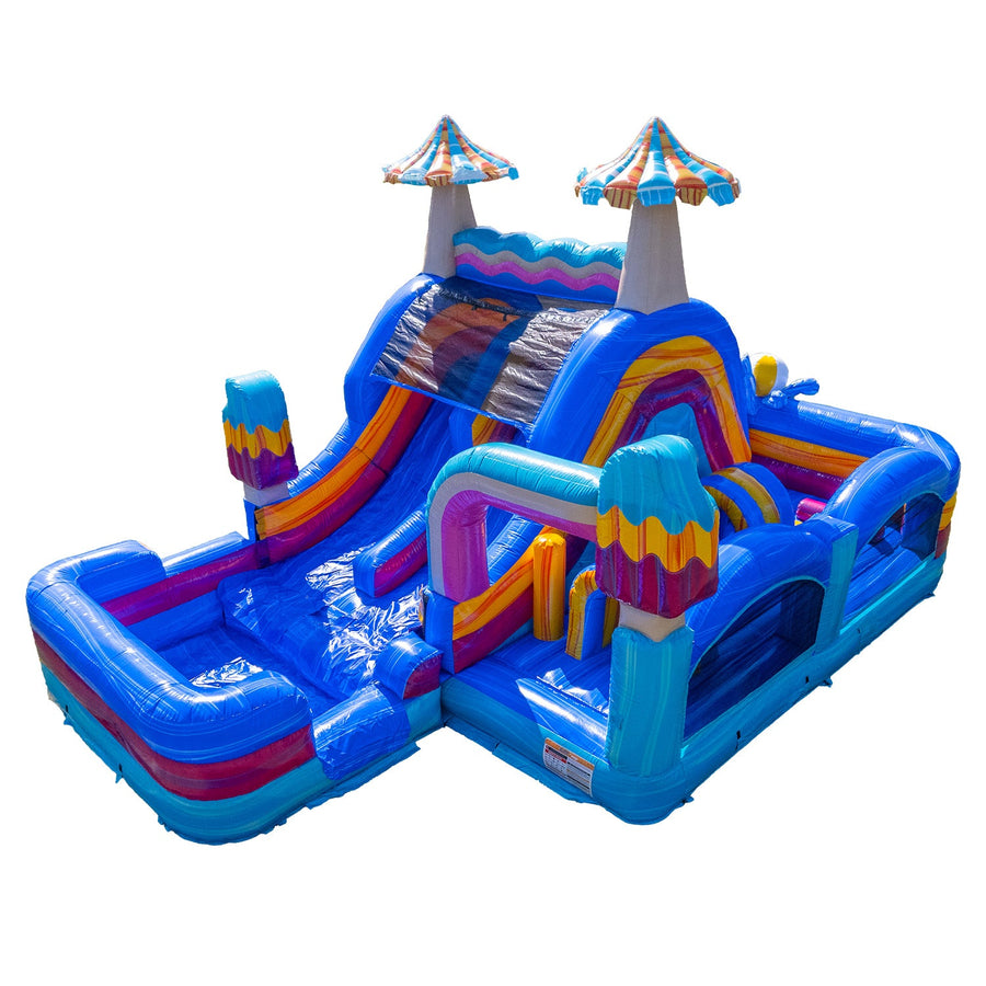 Gear up for the Pool party U-Turn wet dry obstacle! Riders must jump, run, crawl, climb, and slide through the course to the end! The obstacle course also offers ample bounce space! The internal water bladder system means this can be a wet or dry unit. This unit is perfect for larger-scale events and parties!