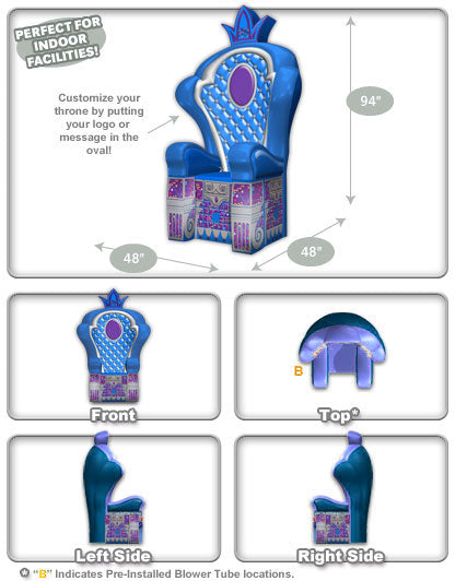 Children and adults alike won't be able to resist having their photo taken on this unit. At 8' tall and only 35 lbs., this unit is easily transportable and can fit almost anywhere. Thrones operate quietly and require virtually no maintenance. The firm foam cushion is comfortable and holds up to 300 lbs. You can easily promote your business by replacing the central purple oval with a digitally printed corporate logo or message.