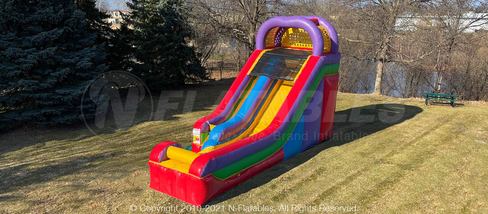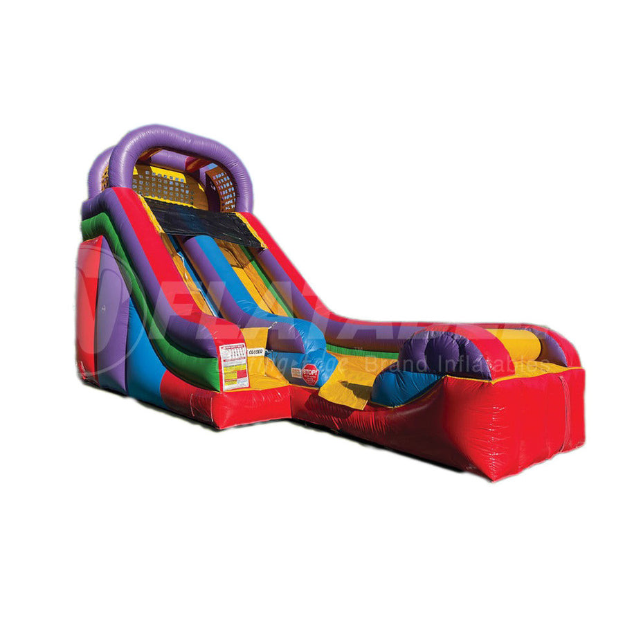 We took our best-selling Wacky 18' Slide and made it compatible for use with water! This unit can be used wet or dry and features an already installed drip-hose and a side draining hole.