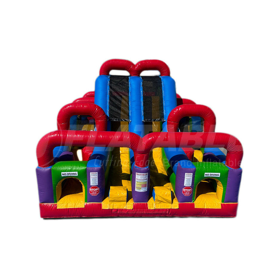 This wacky-colored mini obstacle is a challenge designed with smaller patrons (and your budget) in mind. It features tunnels, tackle dummies, squeeze plays, a climbing wall and slide. As an added bonus, it only requires 1 operator since its 180° design allows patrons to enter and exit on the same side of the unit.