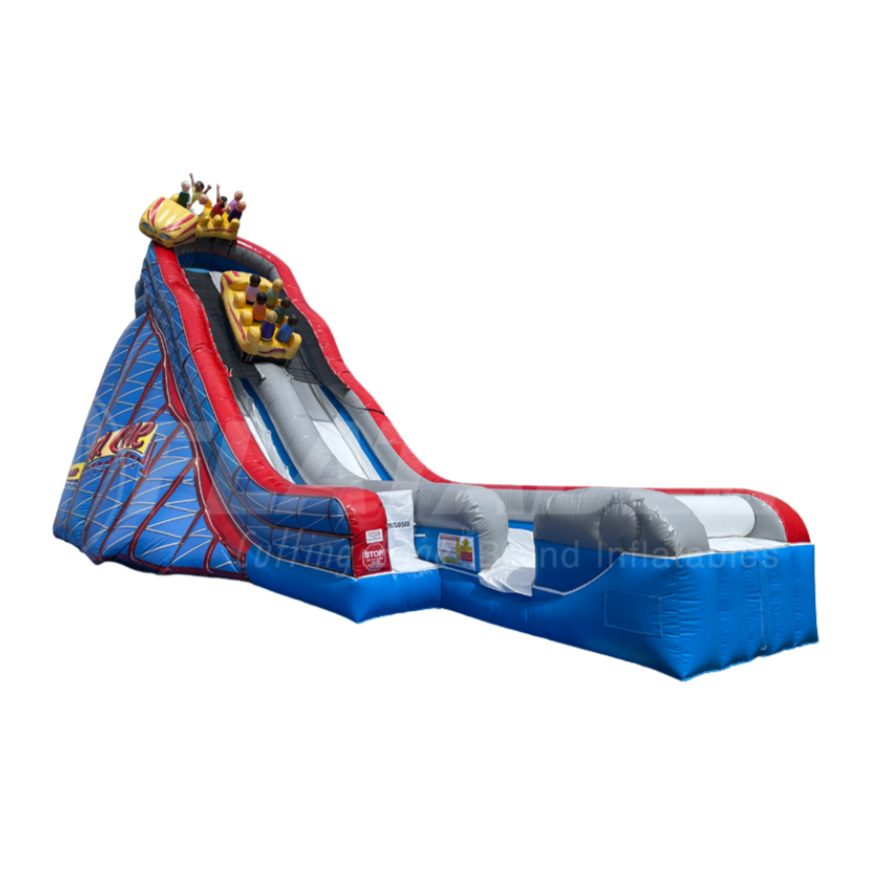 Experience the thrill and excitement of a rollercoaster in a durable and portable inflatable slide! This unit features stunning attention to detail, realistic digital art and undulating slide surface. This colorful unit is also available in an obstacle course version.