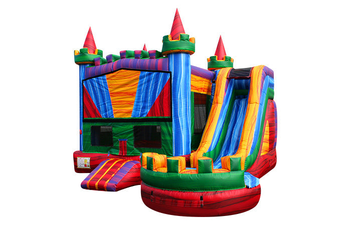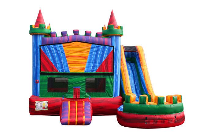 This 27ft Grey Castle Module Combo is a classic. With a jumping area and an attached slide this combo is perfect for any of your upcoming events.