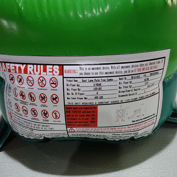 Safety: All Eagle Bounce inflatable games are manufactured to be safe and durable. Our inflatable are FIRE RETARDANT and LEAD FREE. Safety step is standard for all our bouncers and combos. Anti-Jumping safety netting on all our slides to prevent player’s unsafe behavior. Anchors and safety strips included in all inflatable games. Warning sign and other safety signs sewn at the entrance.
