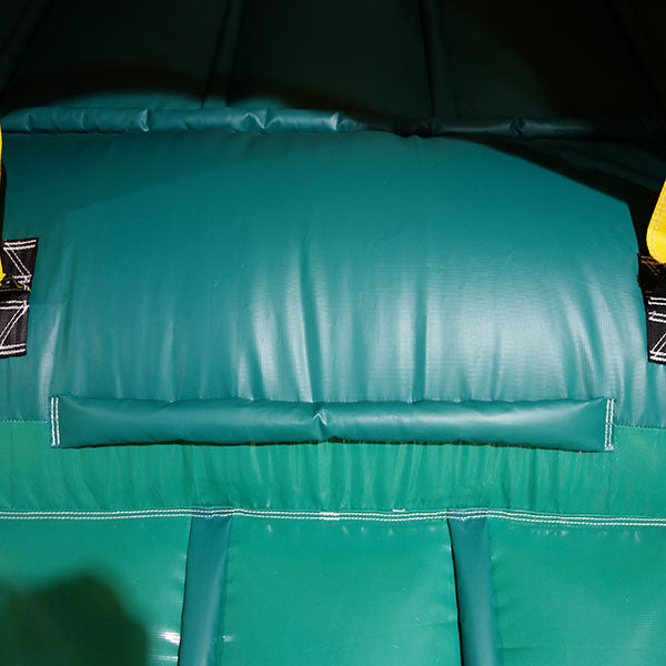 Dura Lite inflatables are constructed from 15oz mixed with 9 oz Light n StrongTM PVC Vinyl with additional vinyl reinforcement sewn in at all stress points to allow for maximum strength, durability and most importantly, safety. All seams have been double or quadruple-threaded and heat-welded for superior durability and these measures also prevent dirt and sand from damaging the seams, thus prolonging the life of your inflatable and minimizing repairs. Our bounce houses are designed with children's safety at heart, featuring finger-safe netting and safety ramp entrance that promotes more safe entry and exiting from the unit. The unit has commercial-grade webbing and Velcro throughout and zippers for easy deflation when it's time to pack up at the end of the day.
