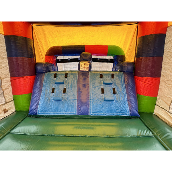 Dura Lite inflatables are constructed from 15oz mixed with 9 oz Light n StrongTM PVC Vinyl with additional vinyl reinforcement sewn in at all stress points to allow for maximum strength, durability and most importantly, safety. All seams have been double or quadruple-threaded and heat-welded for superior durability and these measures also prevent dirt and sand from damaging the seams, thus prolonging the life of your inflatable and minimizing repairs. Our bounce houses are designed with children's safety at heart, featuring finger-safe netting and safety ramp entrance that promotes more safe entry and exiting from the unit. The unit has commercial-grade webbing and Velcro throughout and zippers for easy deflation when it's time to pack up at the end of the day.