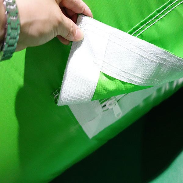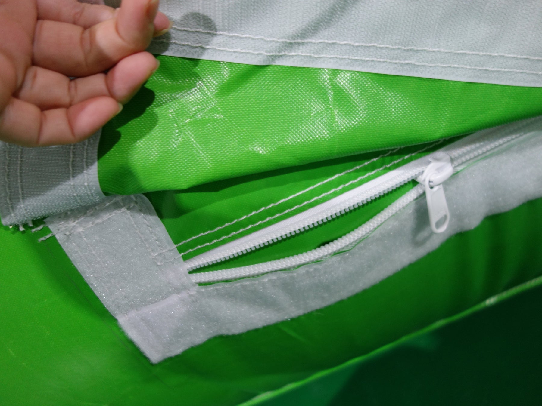 Material: A mix of 15 oz and 9 oz knife coated, rip-stop shiny finishes Light n StrongTM vinyl. 100% vinyl material on the whole unit including the baffle material inside the unit. All materials are made of True Vinyl material to provide the higher strength and flexibility.