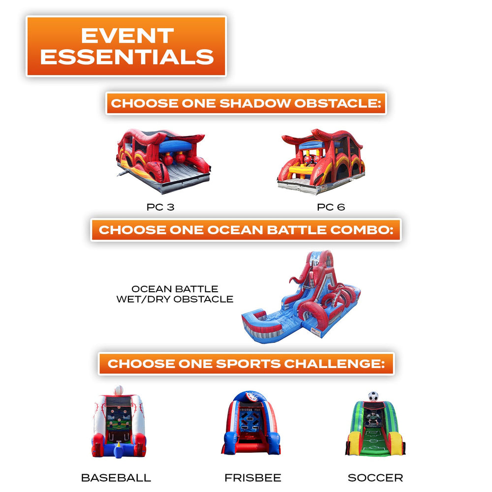 - Pick one (1) Ocean Battle wet-dry obstacle course with a detachable inflated pool