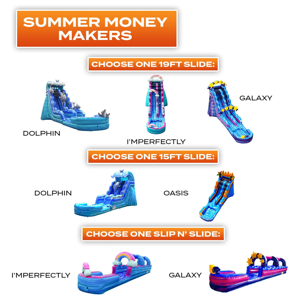 - Pick one (1) 19 ft slide from Dolphin, I'mperfecly, or Galaxy collection