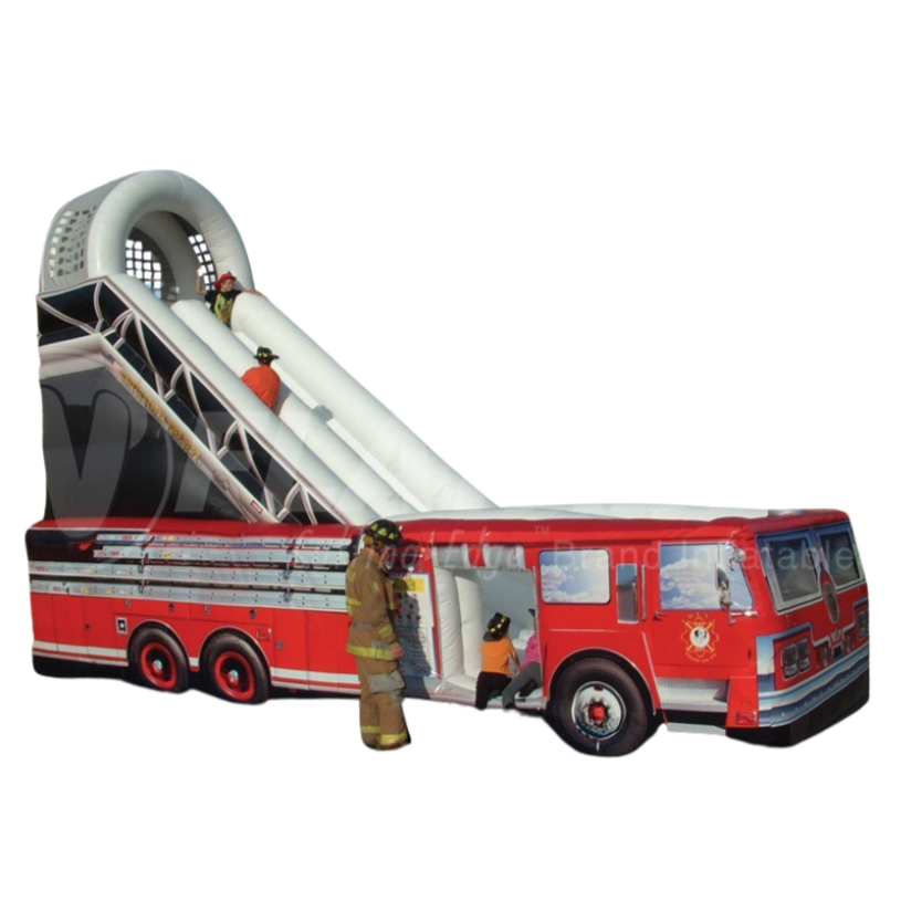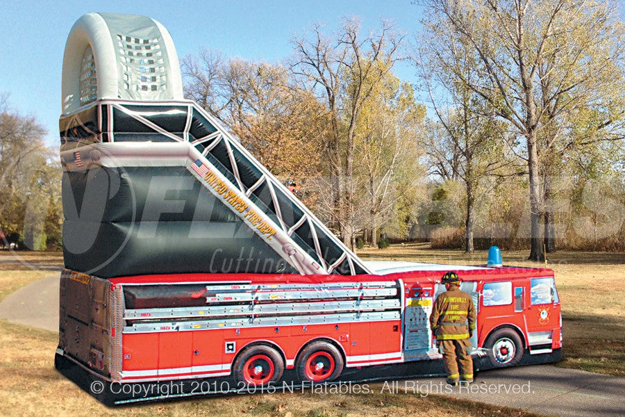 This action-packed slide features photo-realistic digital artwork and is sure to thrill any wannabe firefighter. It has 1 slide lane and 1 climbing lane and at 18' tall, it is ideal for both indoors and outdoors. It is also available in 2 other sizes.