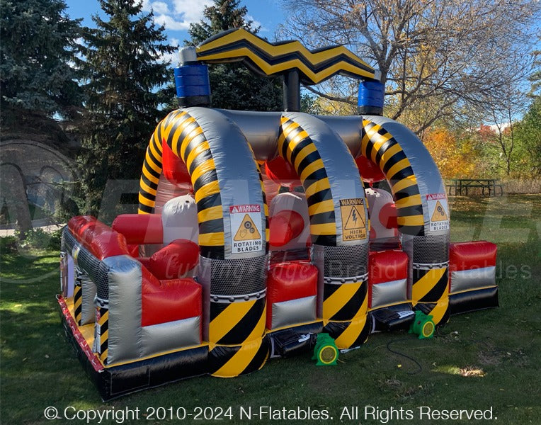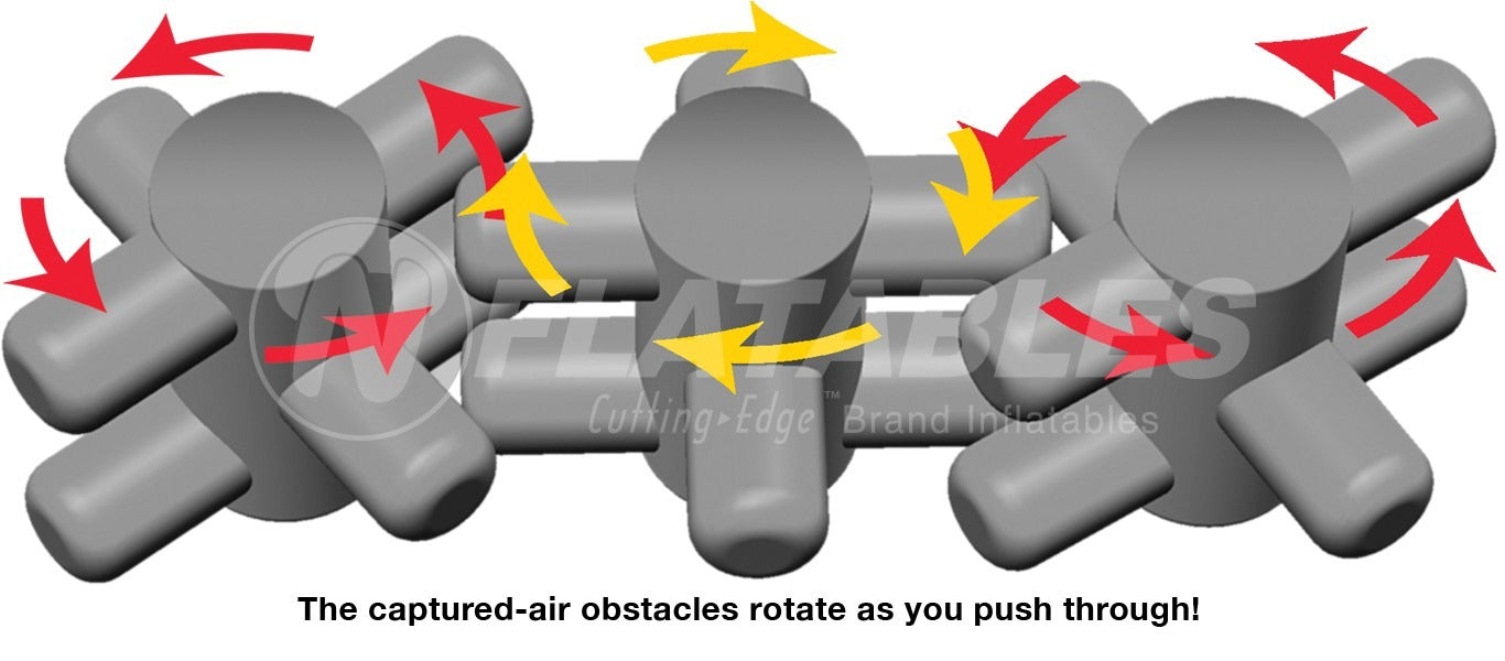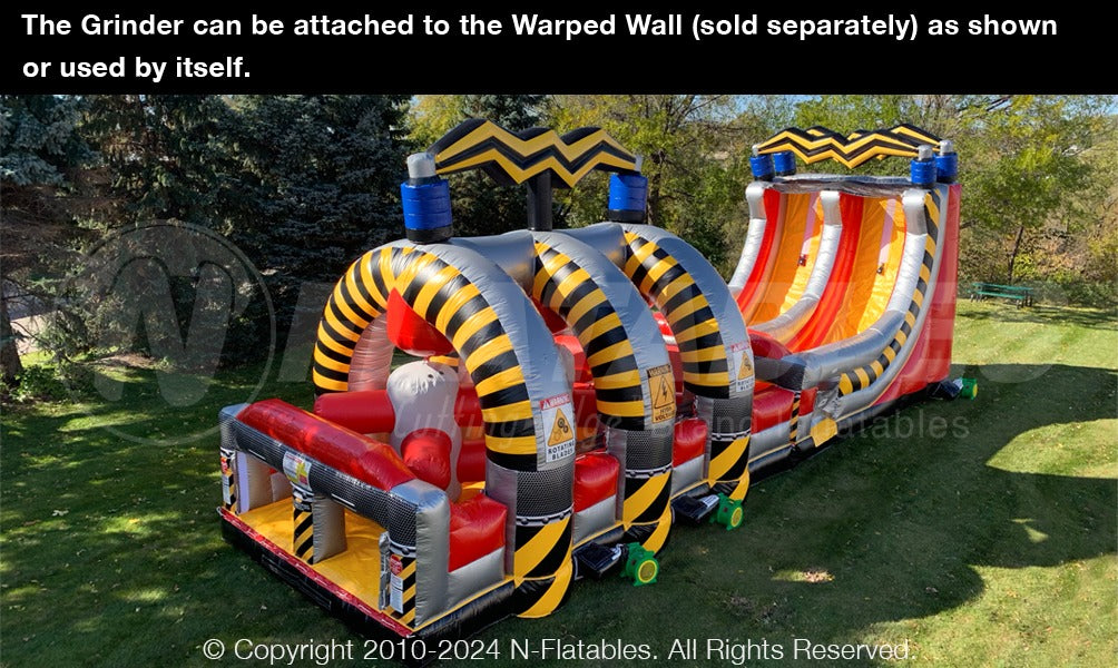 This unit truly puts a whole new "spin" on inflatable obstacle courses! The Grinder features 3 giant grinding turnstyles that manually spin in opposite directions to squeeze and push back your opponent. This unit can be attached to the Warped Wall (sold separately) for even more fun!