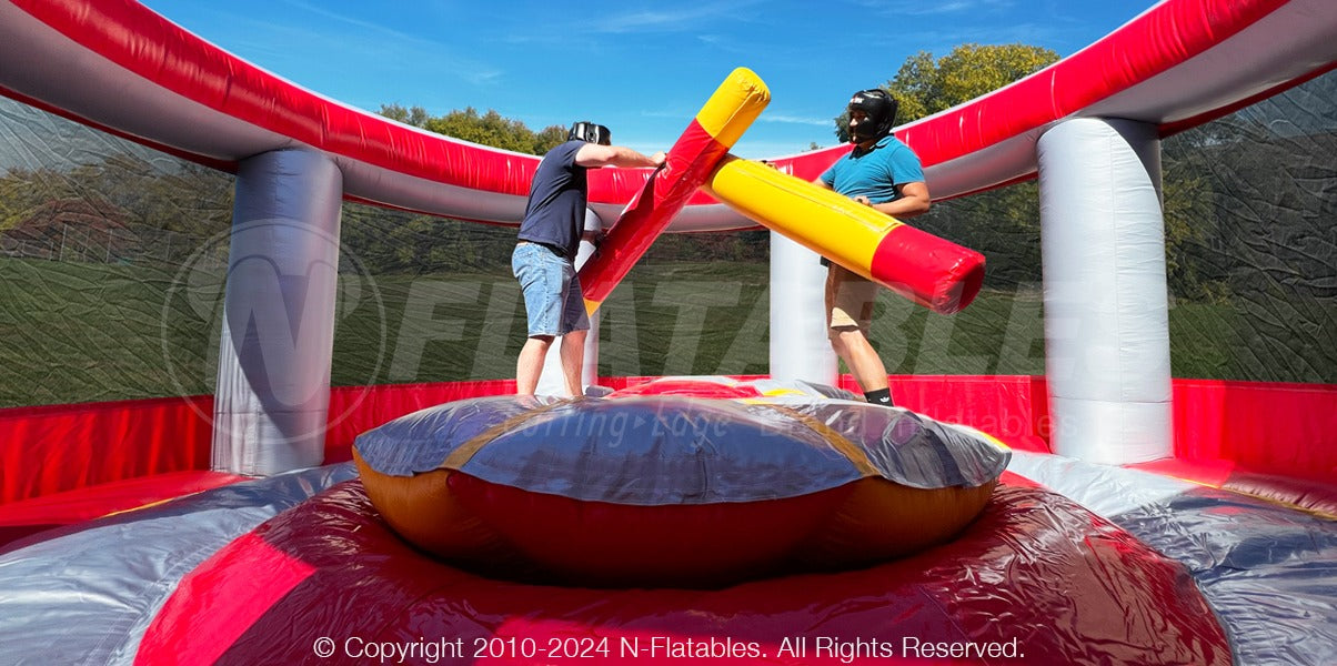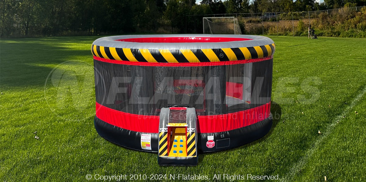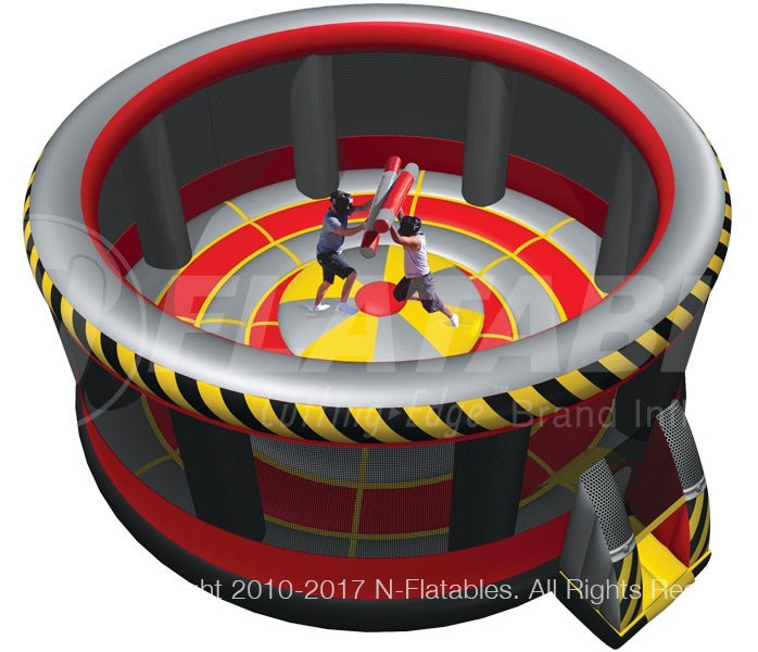 We took our popular Wacky Coliseum™and updated it with our High Voltage™ color scheme! This two-person joust arena has an unpredictable free-floating rocking platform! And as an added bonus, because of the raised walls, this inflatable can also serve as a bouncer for up to six patrons (34" minimum height/60" maximum height). You get two fun units in one!