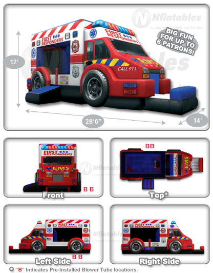 What kid doesn't dream of being a police officer, fire fighter, or doctor when they grow up? This beautiful unit can let their imaginations take flight! It features stunning realistic graphics, a large bouncing area, a climb, and a slide.