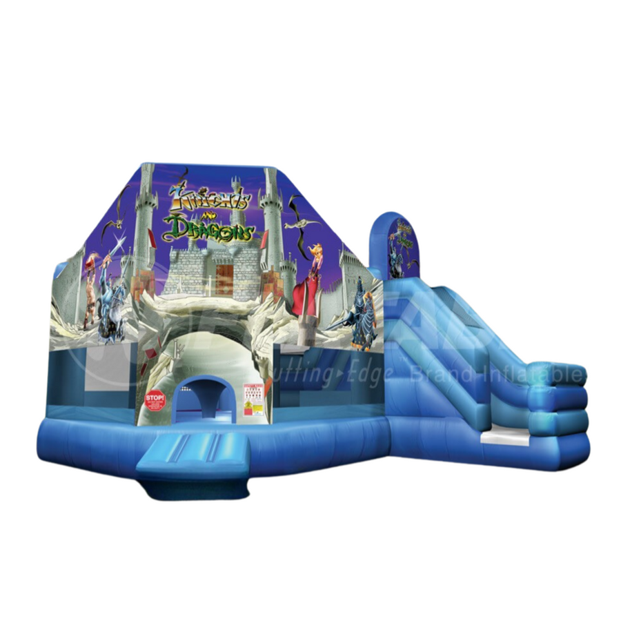 This bouncer combo features a large bouncing area, detailed digital graphics, a crawl-through, slide area, and large FingerSafe™ mesh netting windows that allow for high visibility.