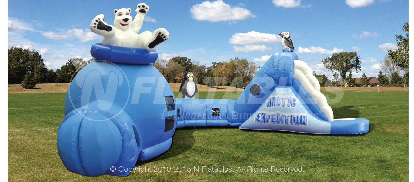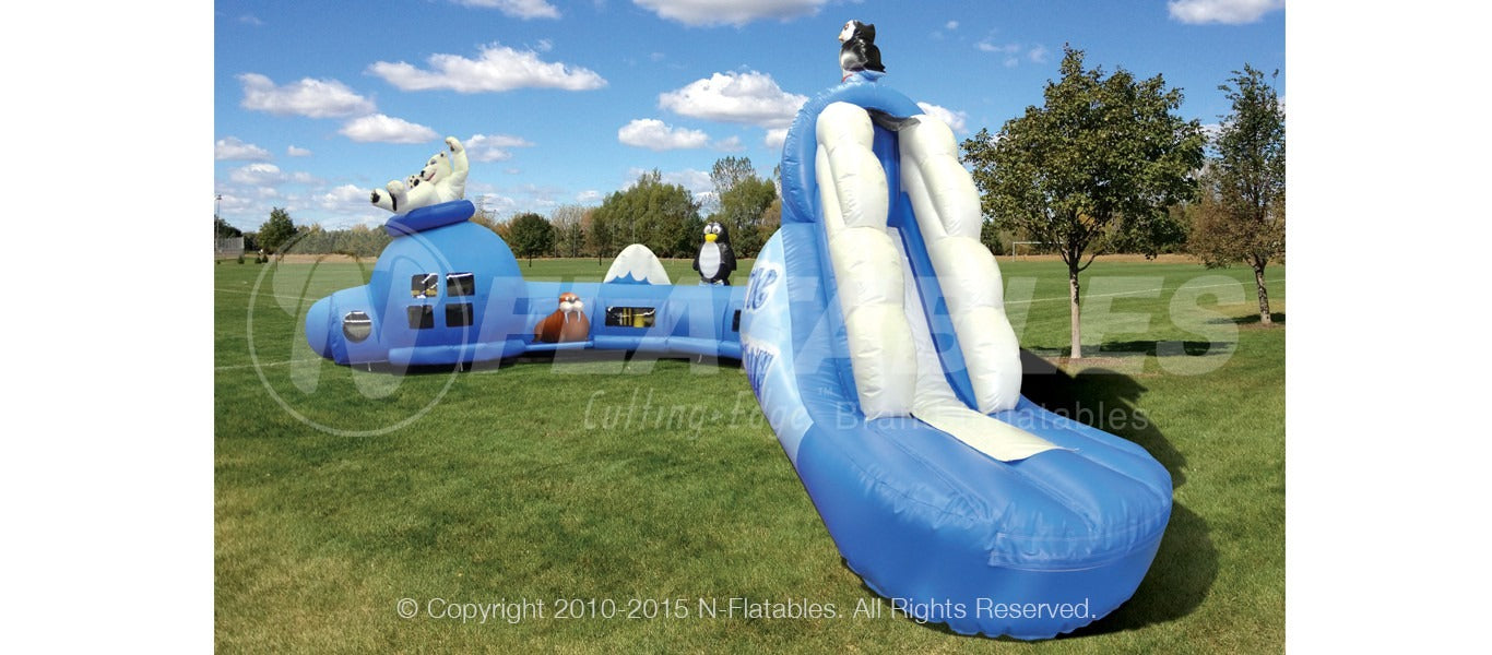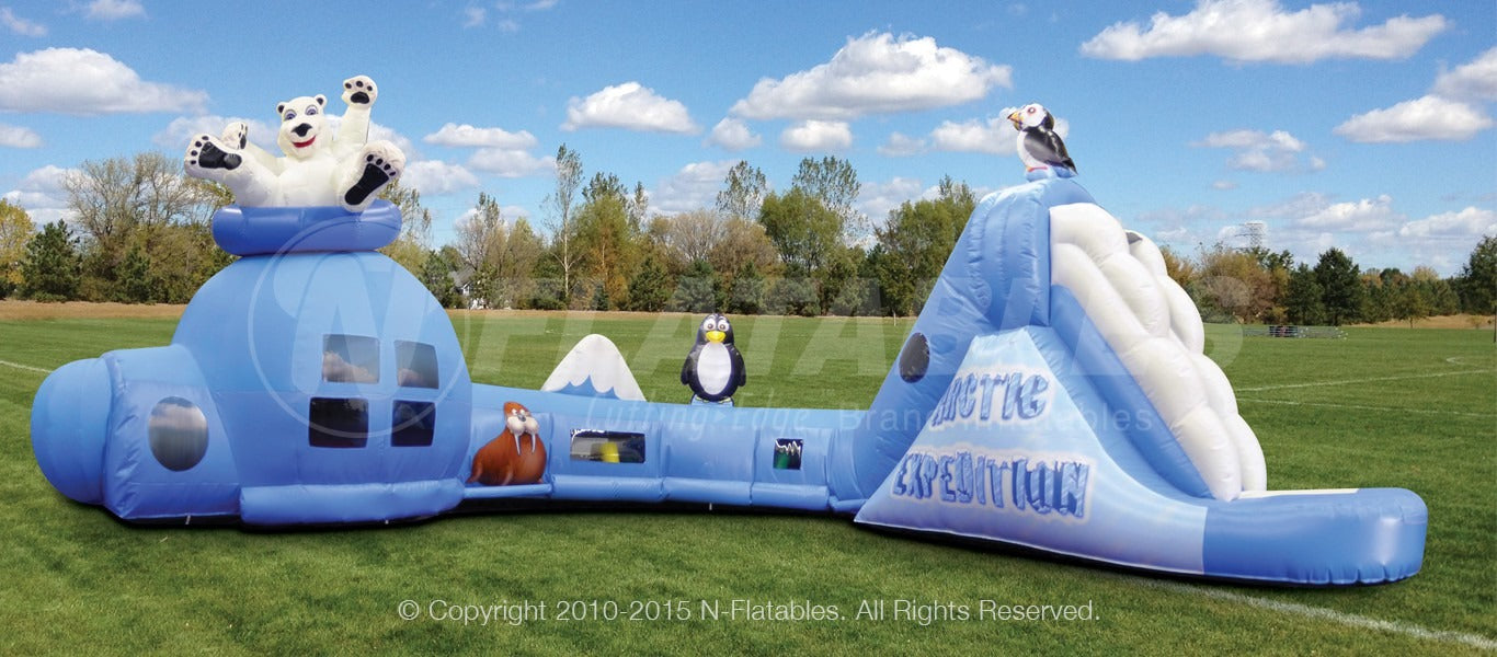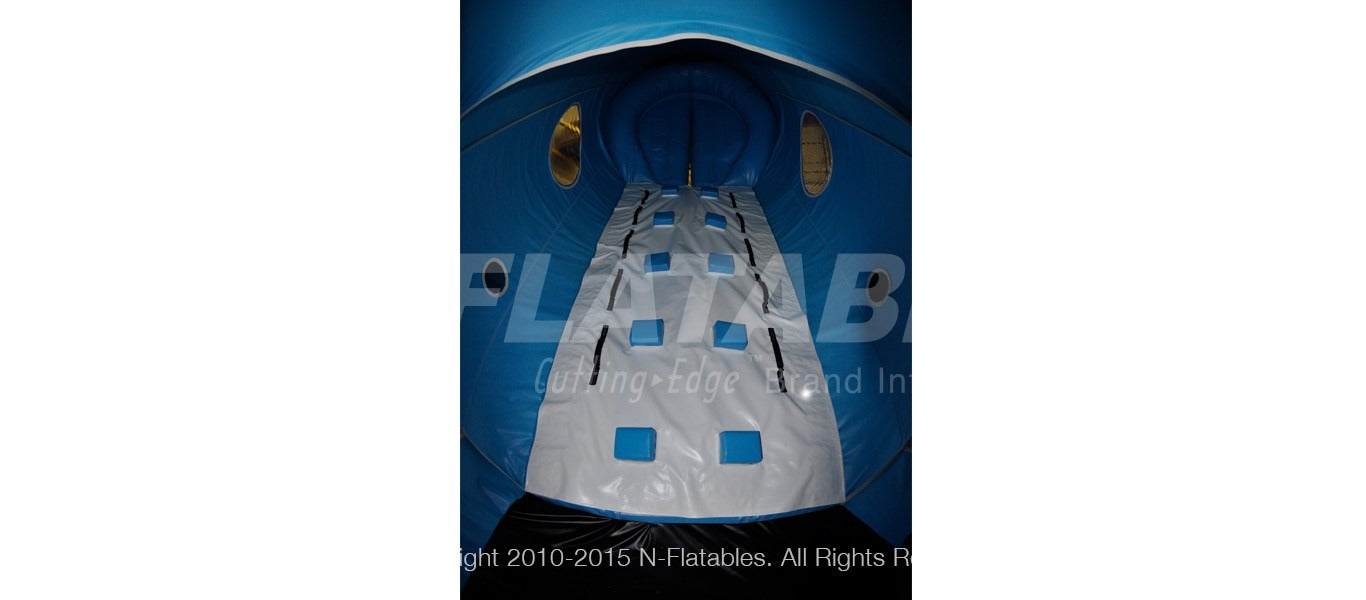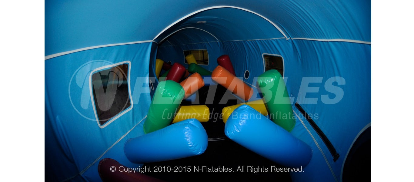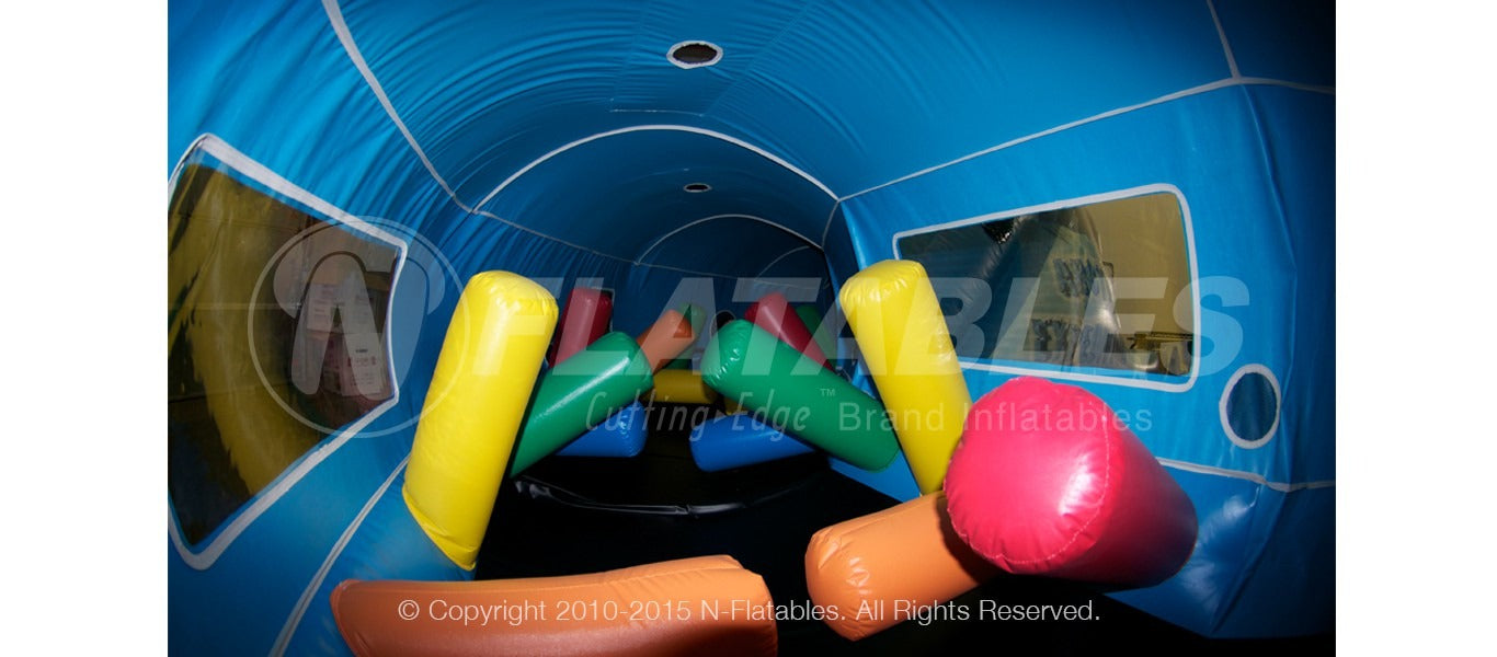 When kids open the inflated doors of this unit, they enter through a crawl through tunnel of fun featuring obstacle tubes, a climb, and a slide. The floor of this is uninflated. There are several clear vinyl holes along the ride that allow parents and operators to peek through and see the kids.