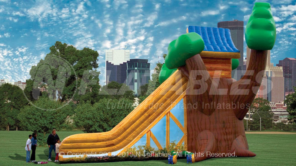 This is the tree house that kids dream of! It features 1 slide and 1 climbing lane and realistic digital artwork. This unit is ideal for outdoor rentals and events. It is also available in a more compact 20' version. This inflatable features the patented CAS System to prevent quick deflation in the event of a power loss.