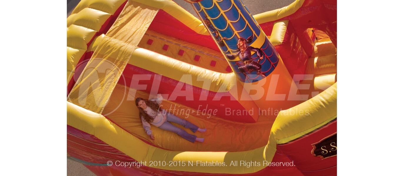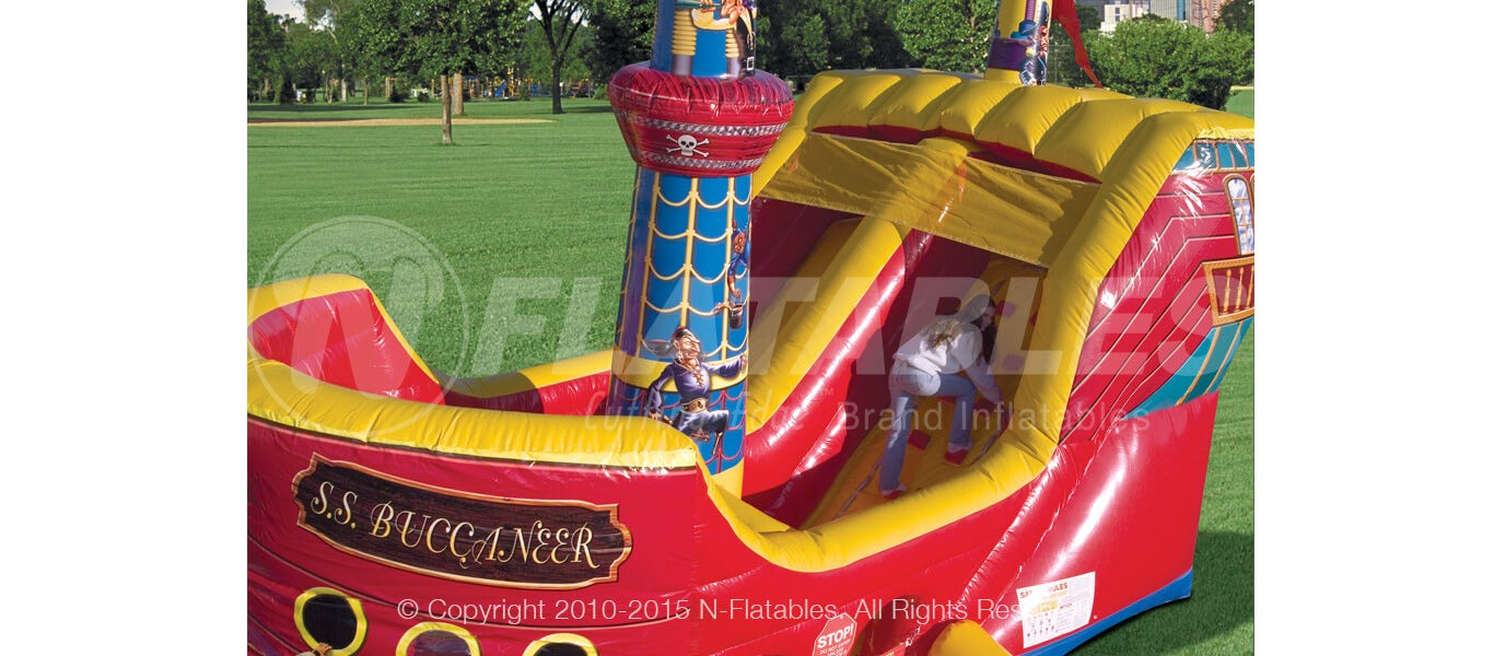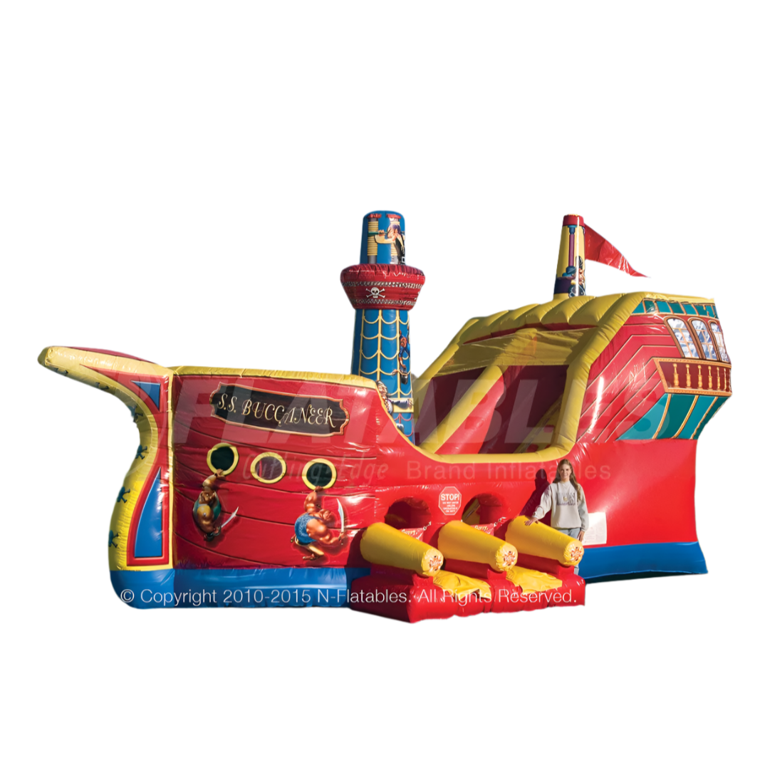 This dazzling, digitally printed unit features the look of a Spanish Galleon on the high seas. Designed as a combination climb, slide, and bouncer, the Buccaneer™ is a true favorite for children of all ages.