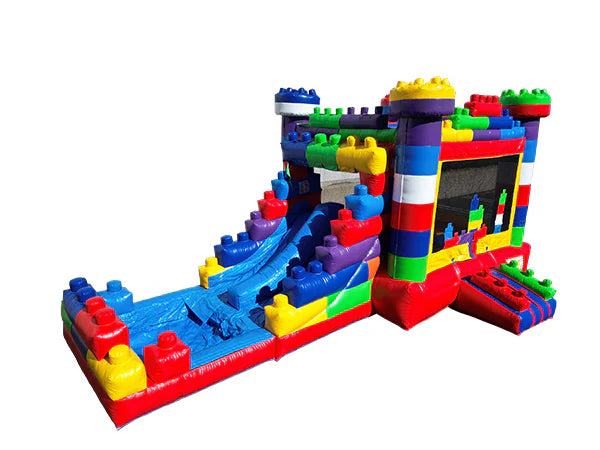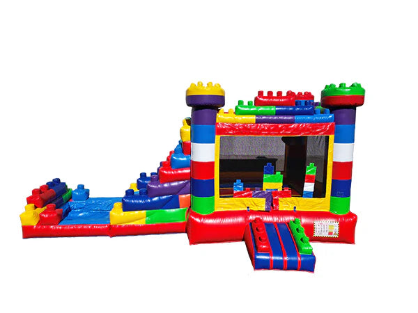 Blocks on blocks! One of our hottest units ever made!! Also one of the most colorful ones. With its vibrant colors and impressive design, the 25ft Block Party Combo is a popular unit for all types of events. Its unique composition of blocks and slides provide hours of endless fun for children and adults alike.