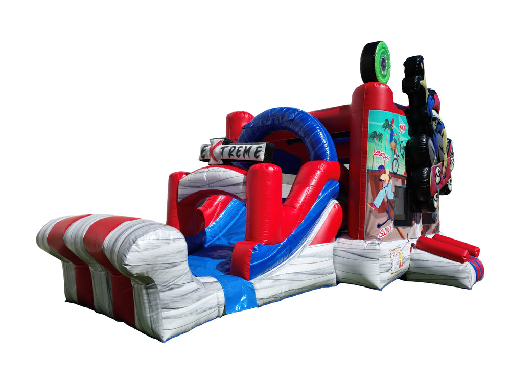 The 25ft Skater Combo is the ultimate inflatable combo for any party or event, combining a dazzling bounce house with a thrilling slide, all decked out in spirited skater theme. At 25 feet, this rental offers a spacious area for kids to jump around and burn off energy, while the attached slide adds an exciting twist to the fun.