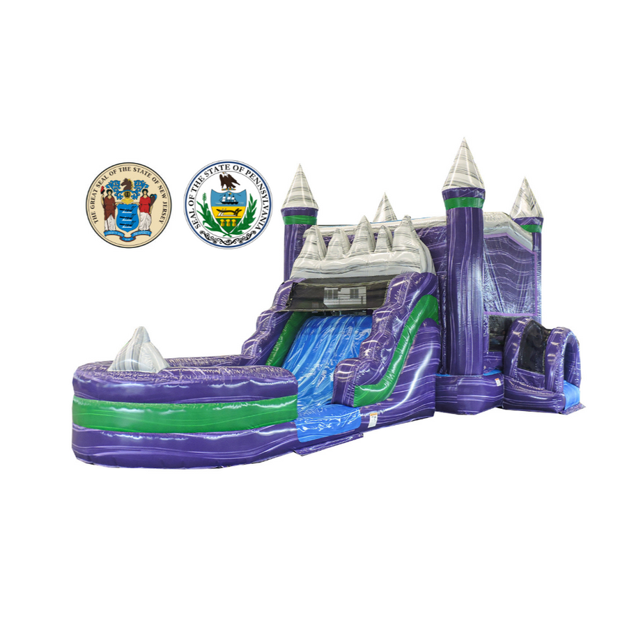 This unit is part of the XL Series from JumpOrange - the next level in inflatables. XL Series combos feature premium 15 oz PVC Vinyl, non-slippery stairs, heat-sealed seams, extra vinyl at stress points, multiple deflation zippers and drains, and attached pools. This makes them great year-round units with an excellent return on investment. With proven quality and exotic new themes available, these inflatables build on previous models while also creating new possibilities!