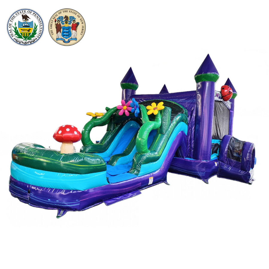 This inflatable is part of the Enchanted Forest Collection, which includes a 25 ft slide, 19 ft slide, 15 ft slide, and 30 ft slip n slide.