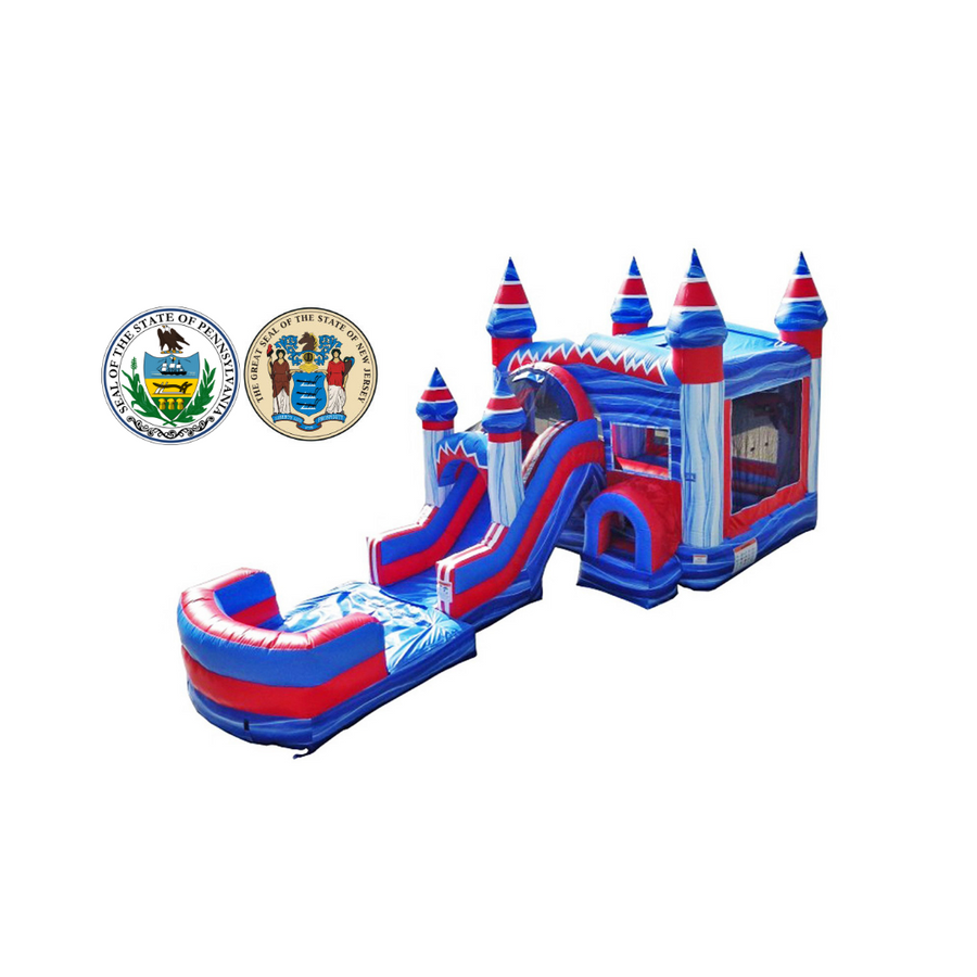 The Flash (5 In 1) Mega Front Loader Combo is built for fun! It features a 6-foot single-lane slide along with an inflated landing zone for dry use. Its fully enclosed entrance helps keep small children from falling off from the side of the ramp, while a tunnel under the slide can turn the unused corner of the combo into a secret hideout. Its variety of features makes this unit a great addition to any party!