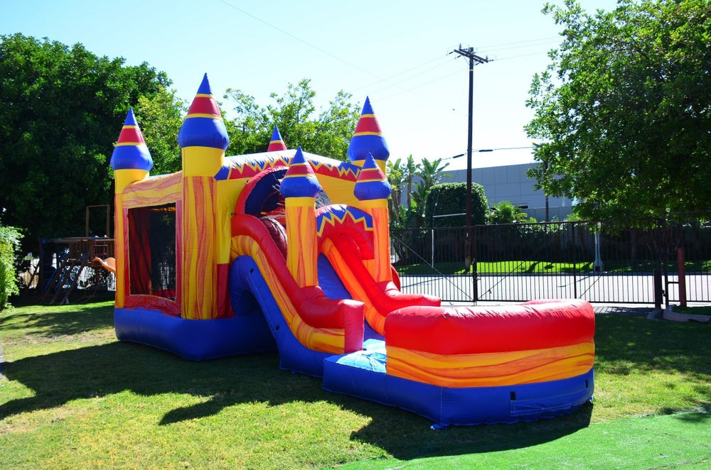 - FEATURES: Slide, Bounce House, Climb Wall, Tunnel and Basketball Hoop