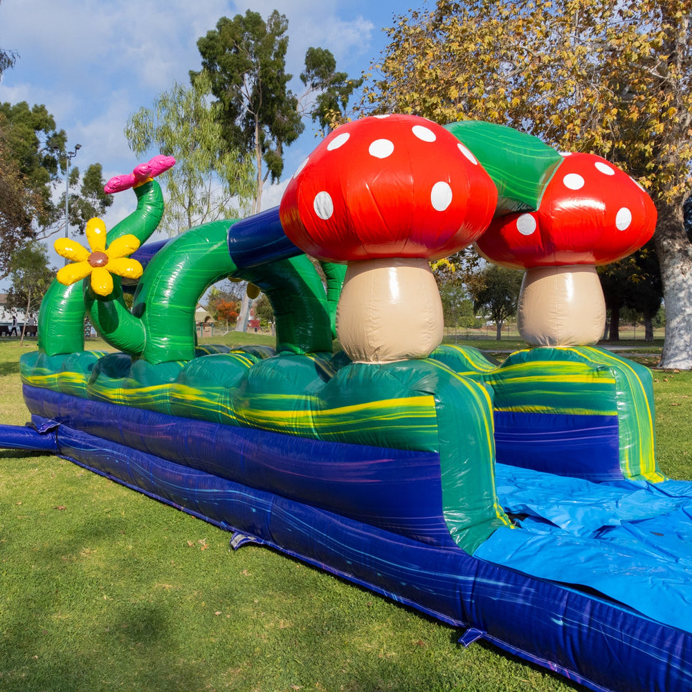 The Enchanted Forest Slip N Slide pairs well with other inflatables in the Stingray Attack collection, which includes a 15 ft slide, 19 ft slide, and dual lane combo.