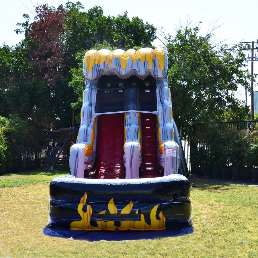 JumpOrange 15 ft giant climber slide is a first choice for children and adults to have a splash fun party on sunny days. This water slide sits 9 feet tall and 28 feet long; this waterslide ensures a wow factor for big kids! These moonwalks come with shade to keep direct sun off kiddos.