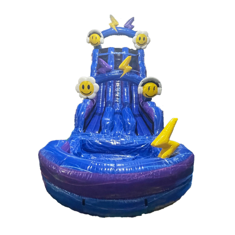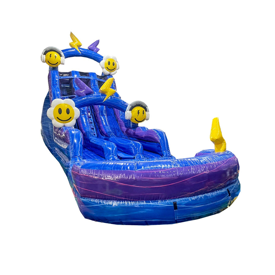 The Happy Face 19 Ft Dual Lane Slide is sure to crank up the smiles! Smiling faces greet guests as they make their way up and down this inflatable!