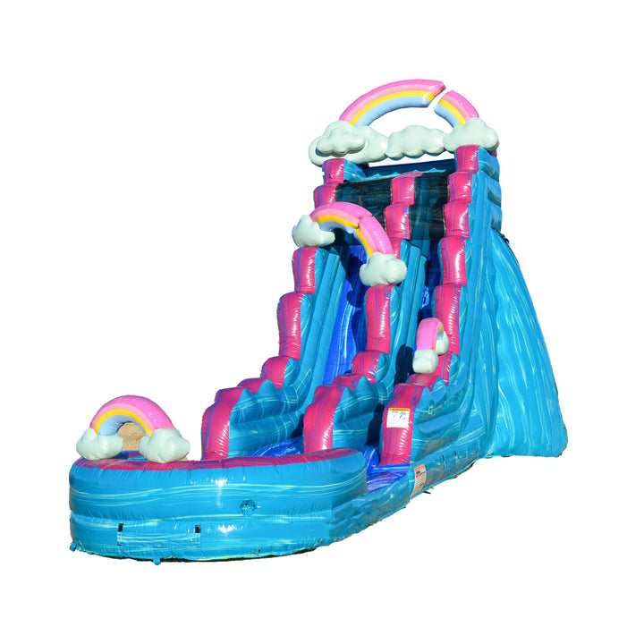 The manufacturer covers a one-and-a-half-year limited warranty on wet and dry inflatable slides.