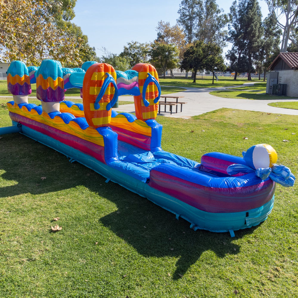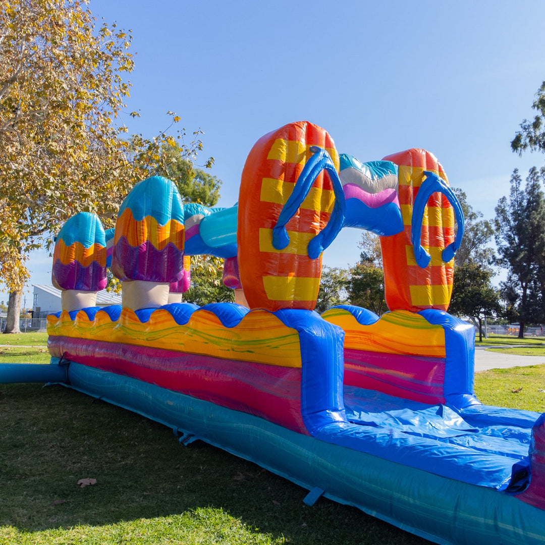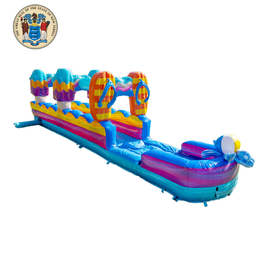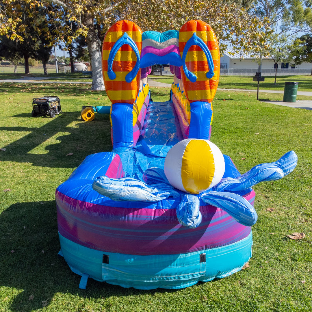 The Pool Party Slip N Slide pairs well with other inflatables in the Pool Party collection, which includes a 15 ft slide, 19 ft slide, and 25 ft slide.