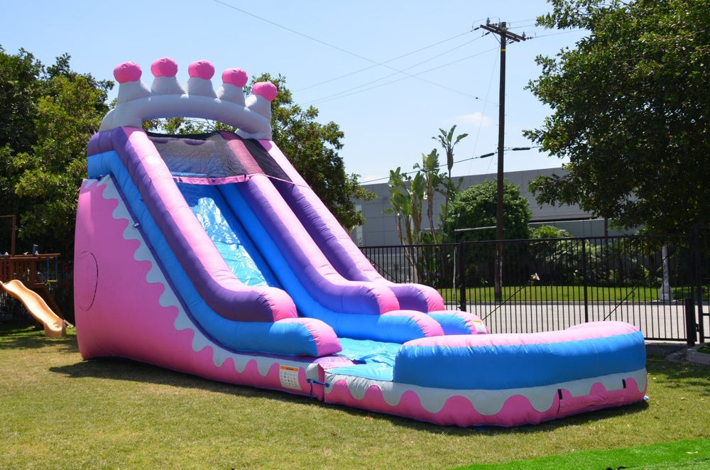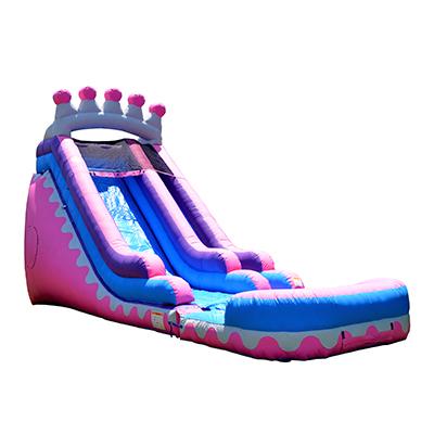 The Princess Tiara 18 Ft Slide lives up to its royal reputation! With posh pink and purple colors and a tiara on top, it's the perfect inflatable for princess-themed playtime!