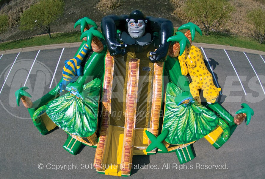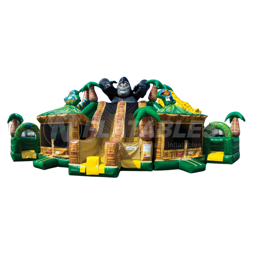 Featuring stunning, amazingly vivid digital artwork and jungle characters, this action-packed inflatable comes standard with three huge slides and two bouncers. It is ideal for indoor facilities and was made to fit into most corners. This unit is also available in a circus theme. Ships in 3 sections.