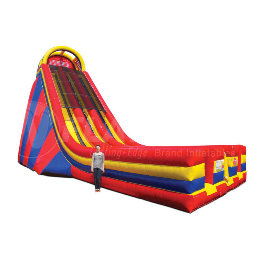 This colorful unit is beyond tall. It features 2 thrilling super slide lanes and 1 climbing lane. It is perfect for any big outdoor event. The colors can be easily customized. This unit uses the patented CAS System (U.S. Patent #7,300,354) to prevent quick deflation in the event of a power loss.