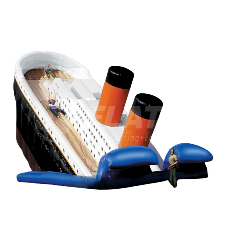 Titanic Adventure Slide™ is the most popular design and highest revenue-generating slide ever made. Spacious climbing area, safety handrails, safety steps, and fast dual slide lanes allow each rider to ascend to the sliding areas with ease. This unit is also available in a 25'' version.
