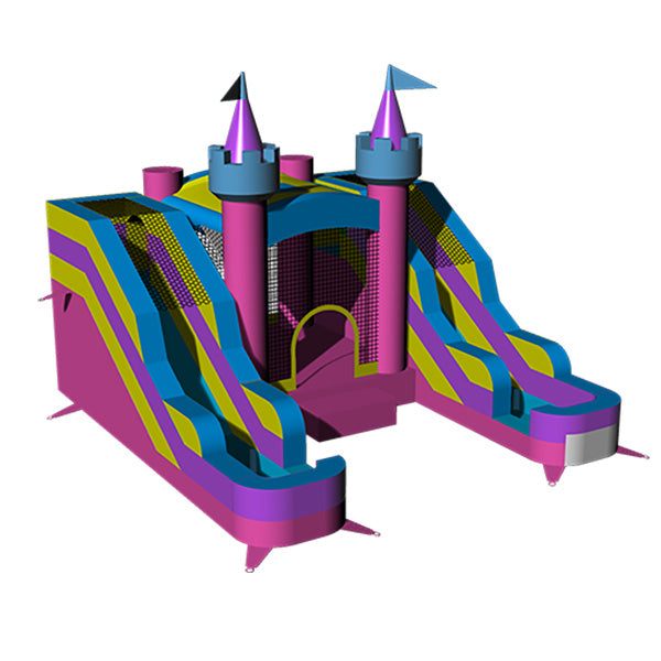 Dura Lite inflatables are constructed from 15oz mixed with 9 oz Light n StrongTM  PVC Vinyl with additional vinyl reinforcement sewn in at all stress points to allow for maximum strength, durability and most importantly, safety. All seams have been double or quadruple-threaded and heat-welded for superior durability and these measures also prevent dirt and sand from damaging the seams, thus prolonging the life of your inflatable and minimizing repairs. Our bounce houses are designed with children's safety at heart, featuring finger-safe netting and safety ramp entrance that promotes more safe entry and exiting from the unit. The unit has commercial-grade webbing and Velcro throughout and zippers for easy deflation when it's time to pack up at the end of the day.