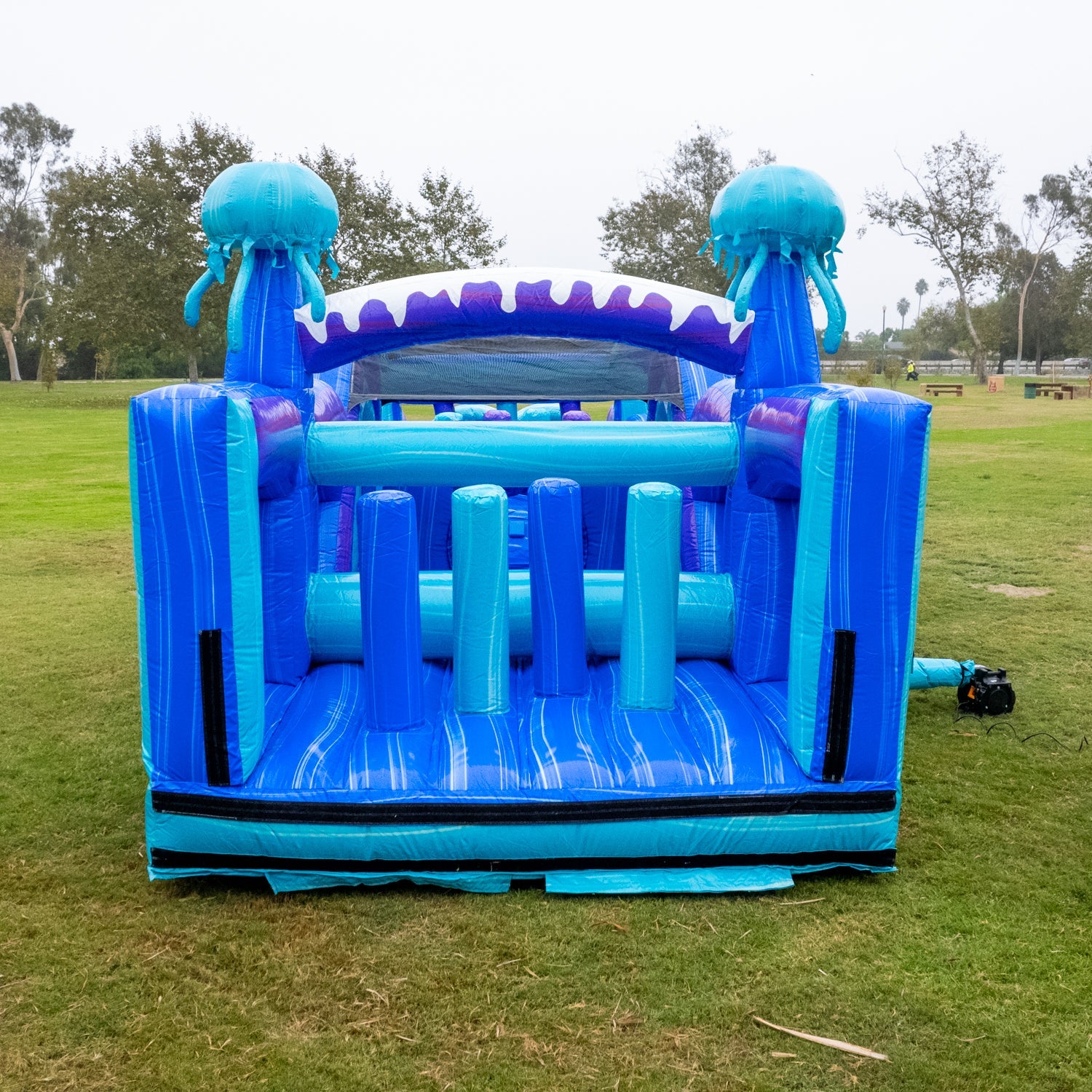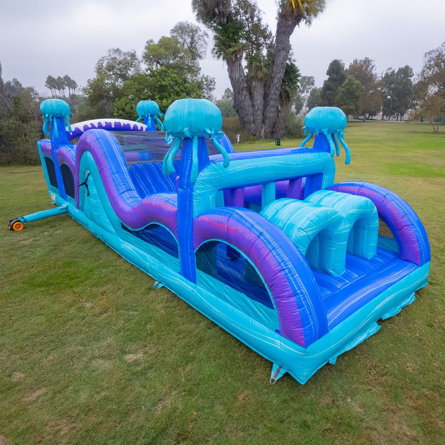 Power up your next party with the Electric 40 ft obstacle - Run 1! Guests must make their way push through a wall of inflated columns and crawl-through tunnels. Finally, they must race up the climbing wall and slide down. The first racer to reach the end is the winner!
