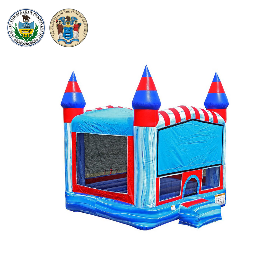The Glacier 13' X 13' Bounce House is the chilliest bounce house around! Its icy color scheme is like an iceberg at the North Pole. A basketball hoop is also inside to complement the ample bouncing space. Made with lead-free 15 oz. PVC vinyl, this unit is a reliable inflatable for parties and events!
