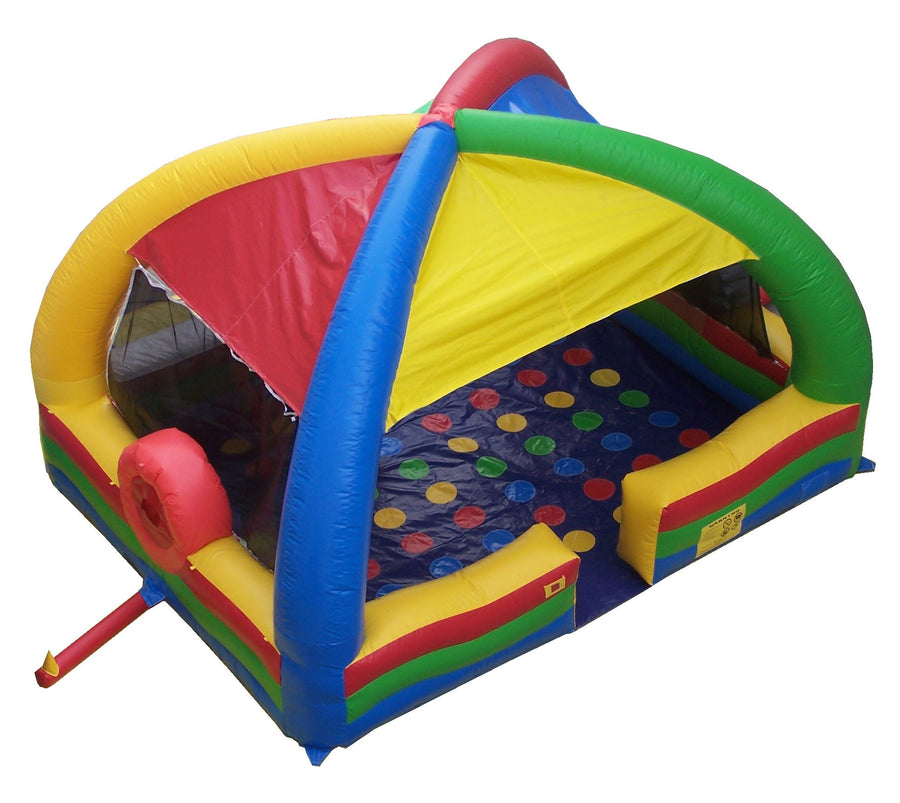 This unique design party tent has two T-Ball games. The back wall can be used as a counter top. The tent has build-in floor with twister game.