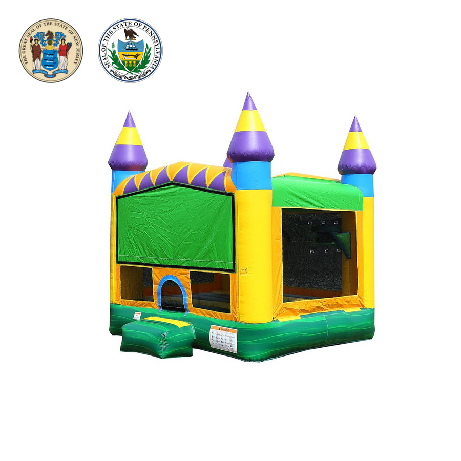 The Jungle Zoo 13' X 13' Bounce House is a walk on the wild side! The fun color scheme is inspired by various animals. A basketball hoop is also inside to complement the ample bouncing space. Made with lead-free 15 oz. PVC vinyl, this unit is a reliable inflatable for parties and events!