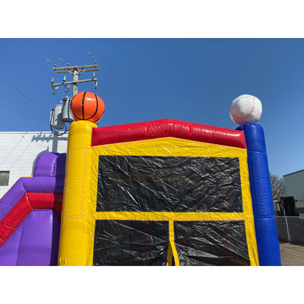 This Heavy Duty Commercial Grade Combo is great for birthday parties, events, recreation centers and more. The Sports theme is always a popular seller, and is appealing to both boys and girls of all ages.