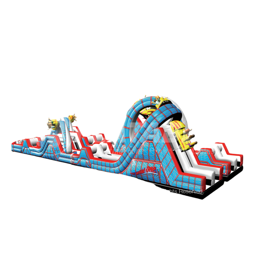 How do you take an fantastic unit and made it even better? With the Ultimate Wild One, that's how! The Ultimate Wild One combines the three modules of the standard Wild One Roller Coaster with two more new modules... giving you an incredible five inflatable units to arrange in any configuration you choose (for up to 227 feet of pure obstacle dynamite)! Ships in 5 sections.